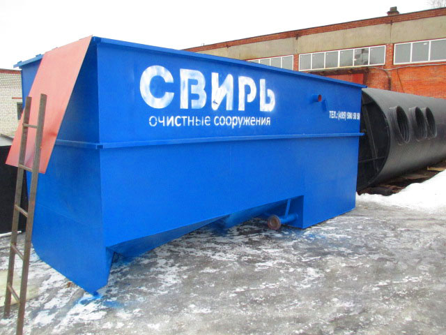 Установка «СВИРЬ-2,5» с производительностью 2,5 л/сек. предназначена для очистки поверхностных сточных вод (дождевых и талых) на территориях автозаправочных станций, автостоянок, складов горюче-смазочных материалов, нефтебаз, промышленных зон и жилых районов с примерной площадью водосбора до 0,125 га.